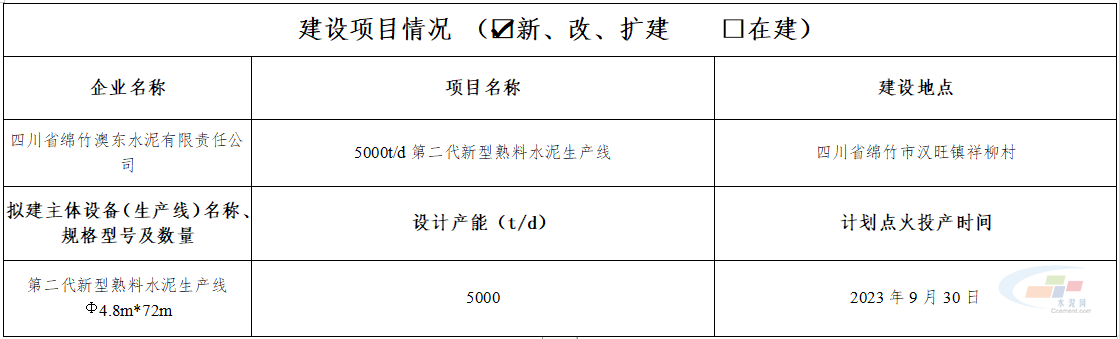 關(guān)于四川省澳東水泥5000t/d水泥熟料生產(chǎn)線智能化升級(jí)改造項(xiàng)目有關(guān)情況的公示